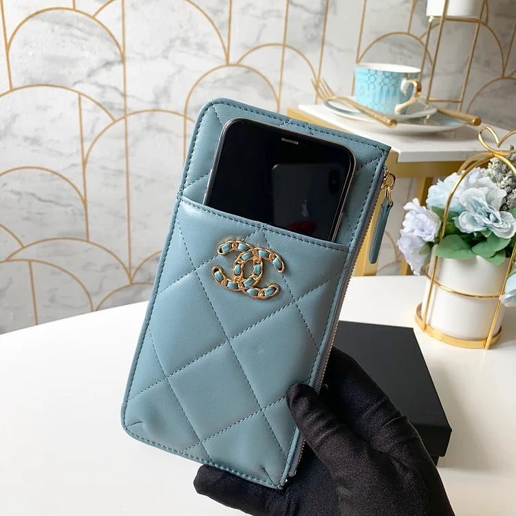 cc 19 Matelasse Phone and Card Case Light Blue Bag For Women 19cm/7.5in
