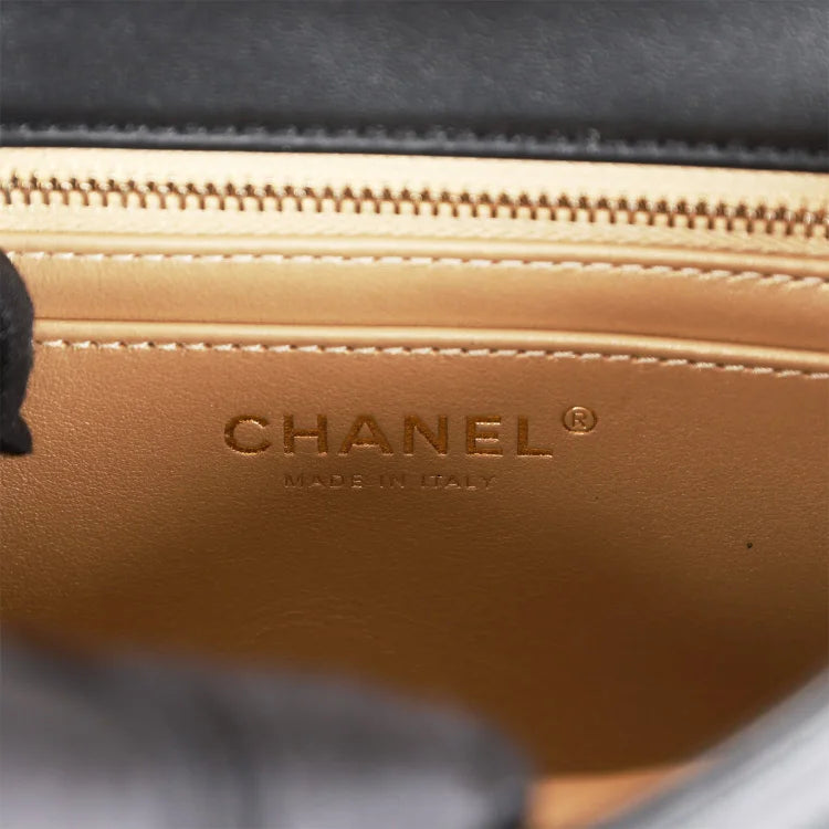 CC Pearl Crush Mini Square Flap Bag Black Lambskin Antique Gold Hardware