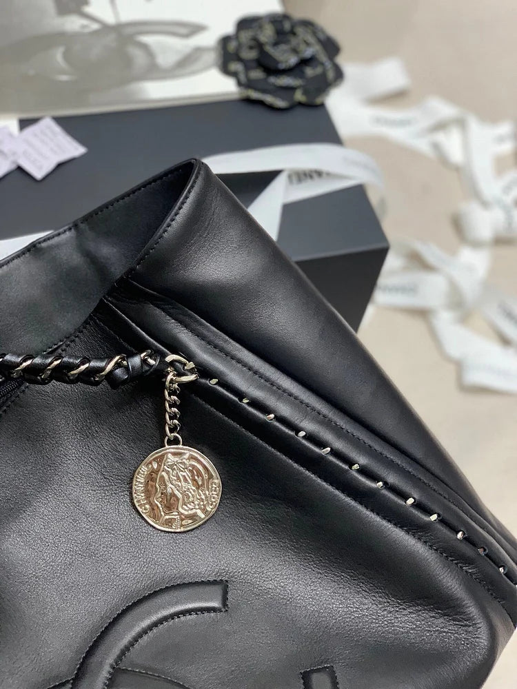 CC Soft Calfskin Shopping Bag Top Handle Black
