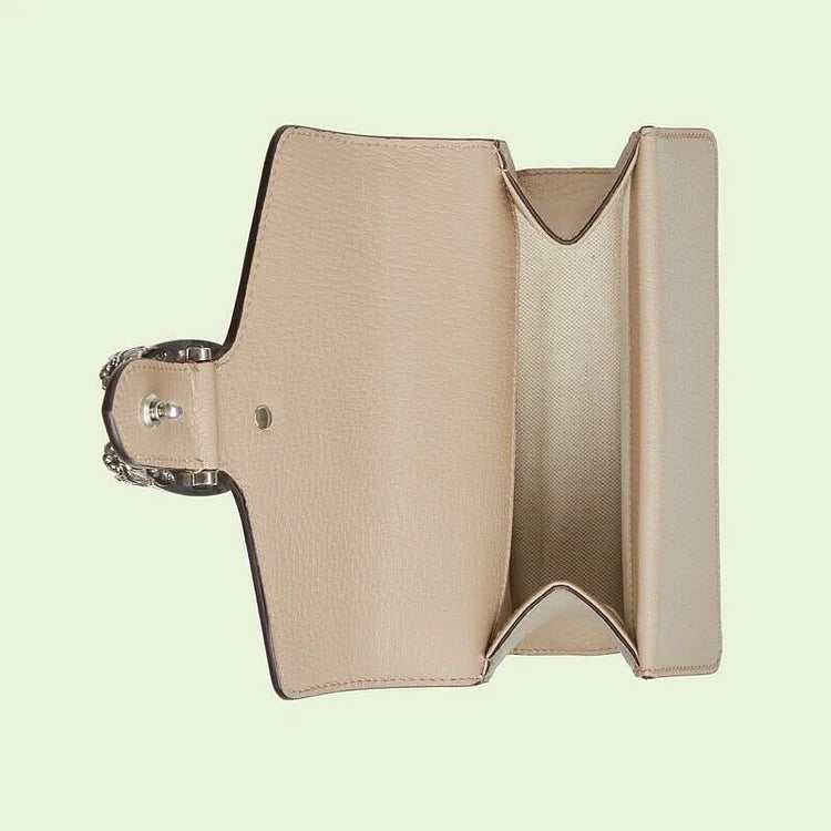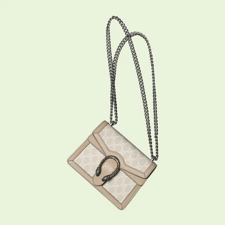 GG’s March of Love tells a touching story in color.GG Supreme canvas is one of the brand’s signature fabrics. inspired by archive designs from the ’30s.The classic beige and ebony designs have been reinterpreted in a refreshing combination of beige and white. conveying the brand’s enduring design essence.The pattern has also become a signature highlight on this Dionysus collection of mini bags.