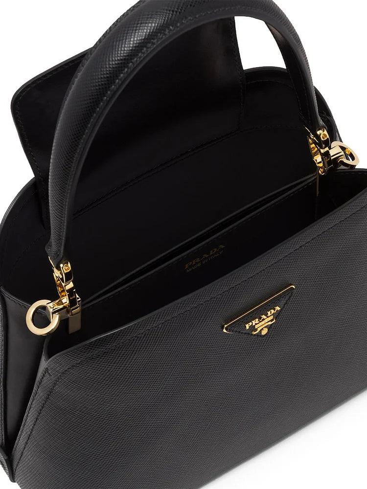 PP Medium Saffiano Leather PP Matin��e Bag in Black