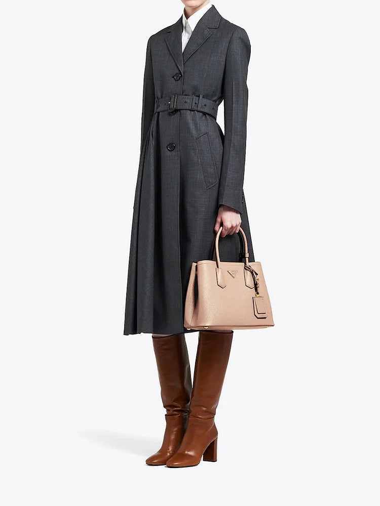 PP Small Saffiano Leather Double PP Bag in Powder Pink