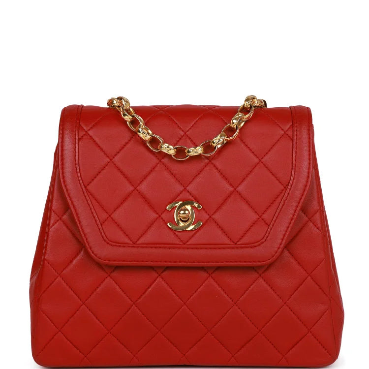 Vintage CC Trapeze Flap Bag Red Lambskin Gold Hardware