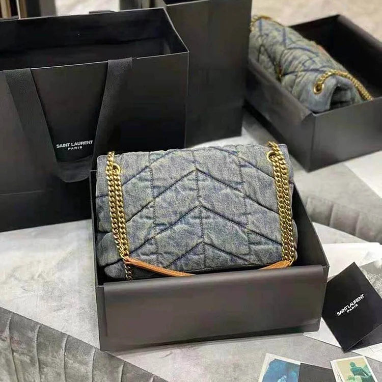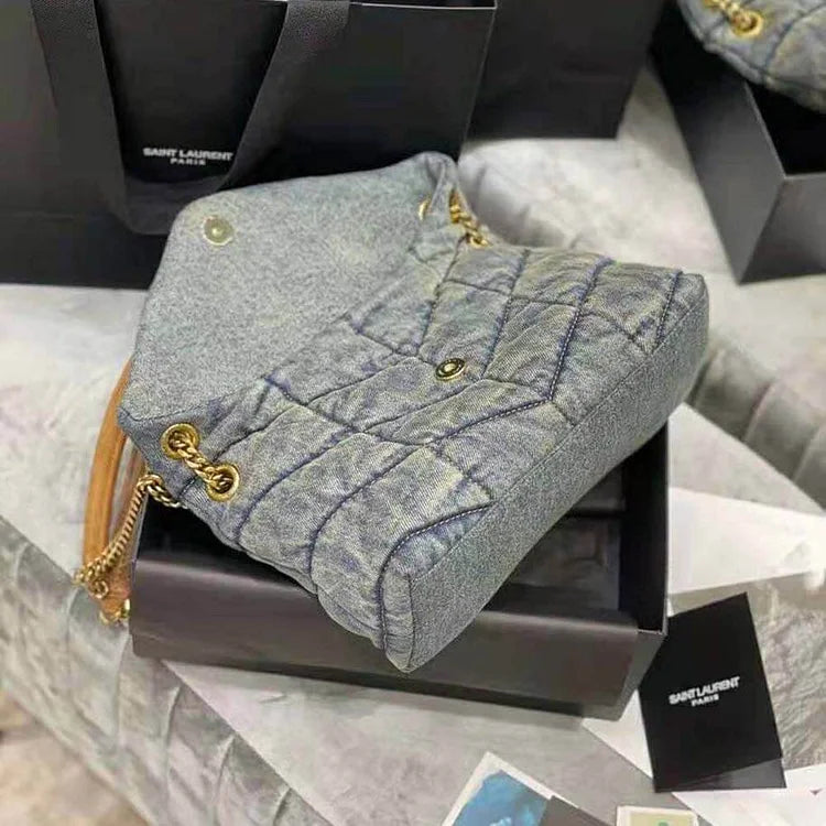Y Puffer Small Bag in Quilted Vintage Denim and Suede