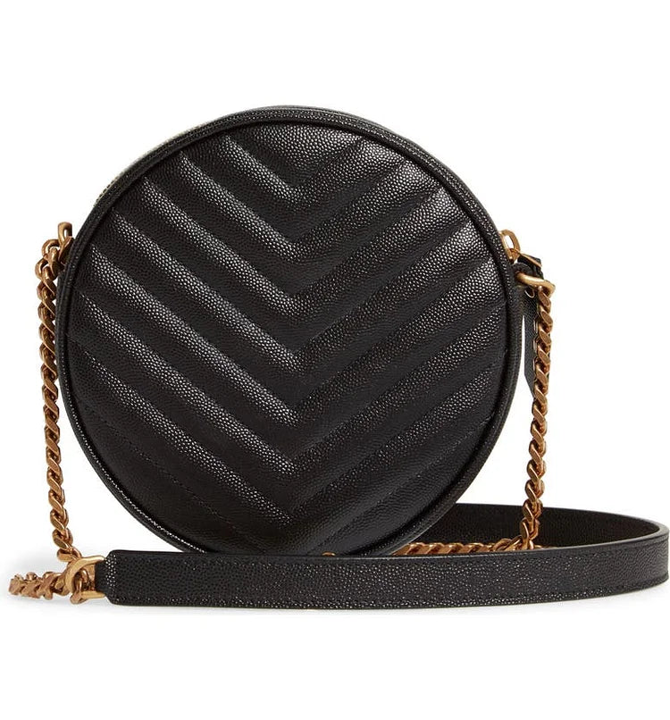 Y Vinyle Round Camera Bag in Chevron-Quilted Grain de Poudre Embossed Leather